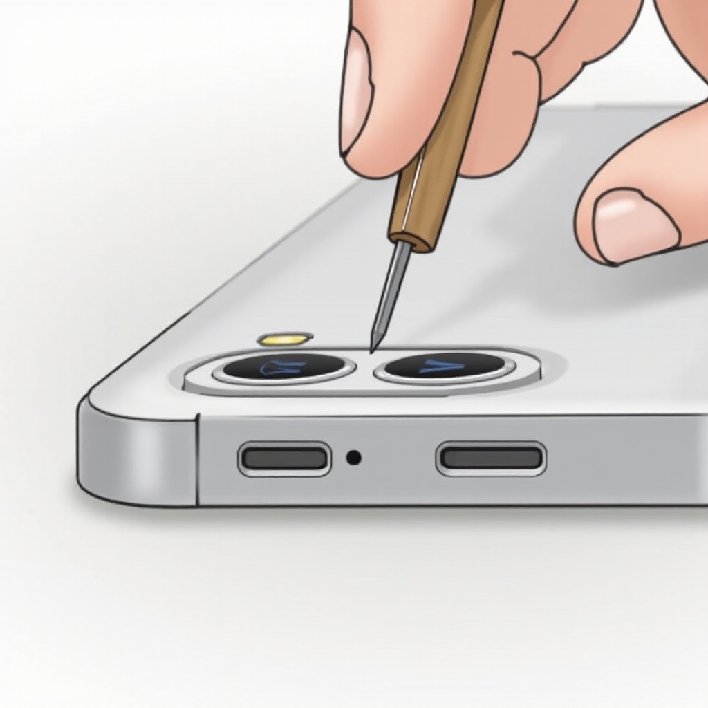 - Usa uno Strumento di Espulsione SIM o una Graffetta: Inserisci con fermezza ma delicatamente lo strumento nel foro di espulsione adiacente al vassoio della SIM finché non si apre.